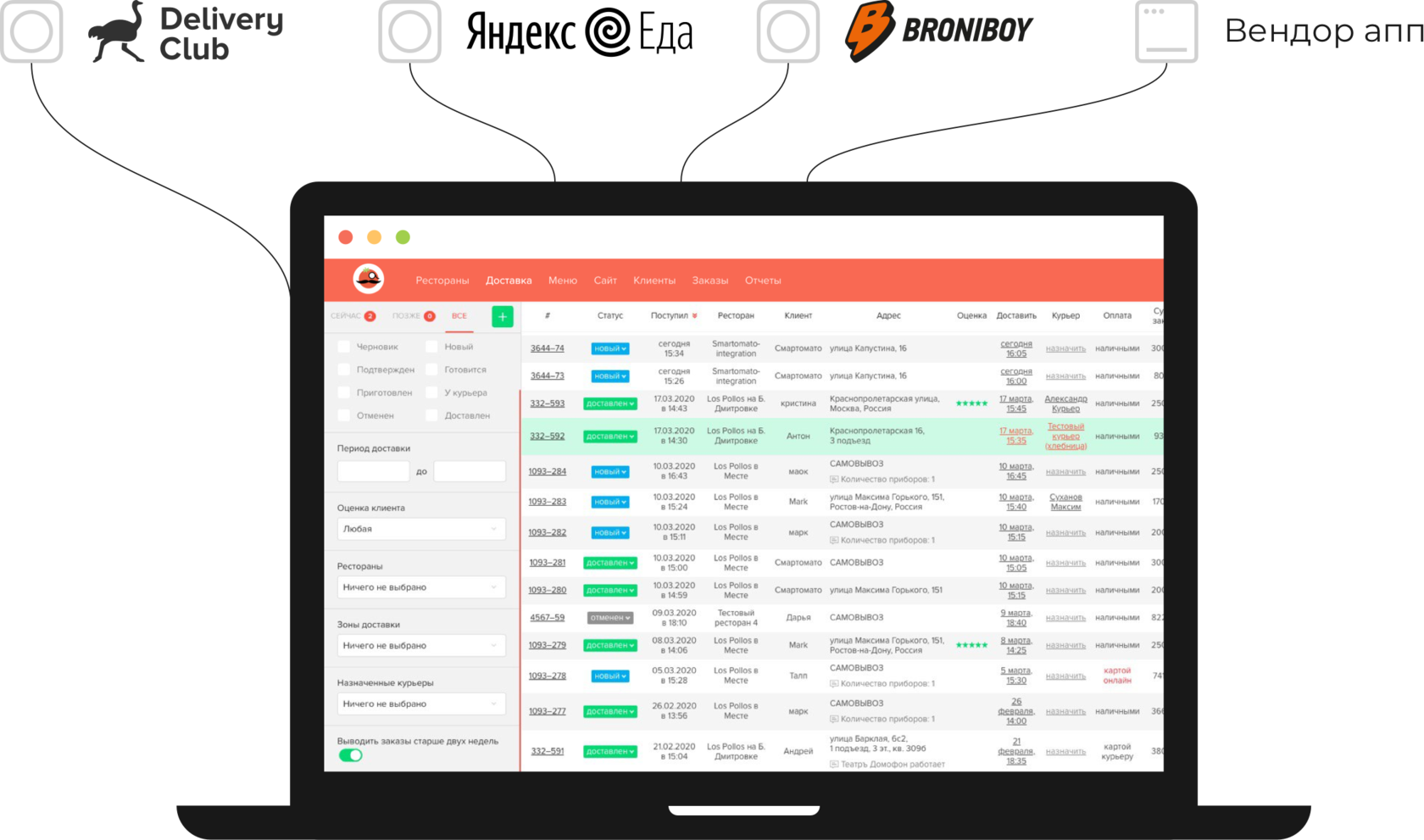 Готовые интеграции с Яндекс Доставкой, Доставистой, Broniboy.